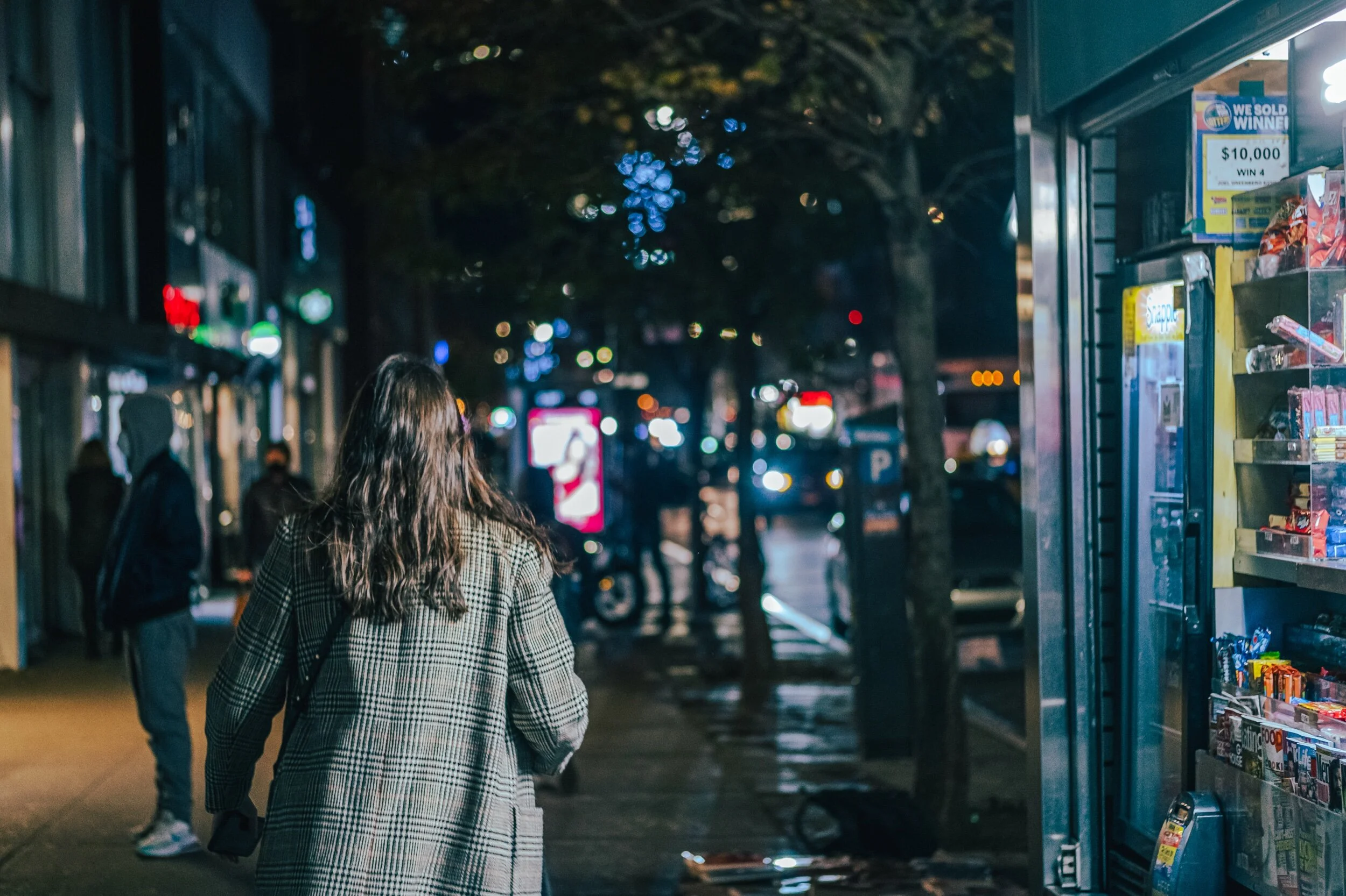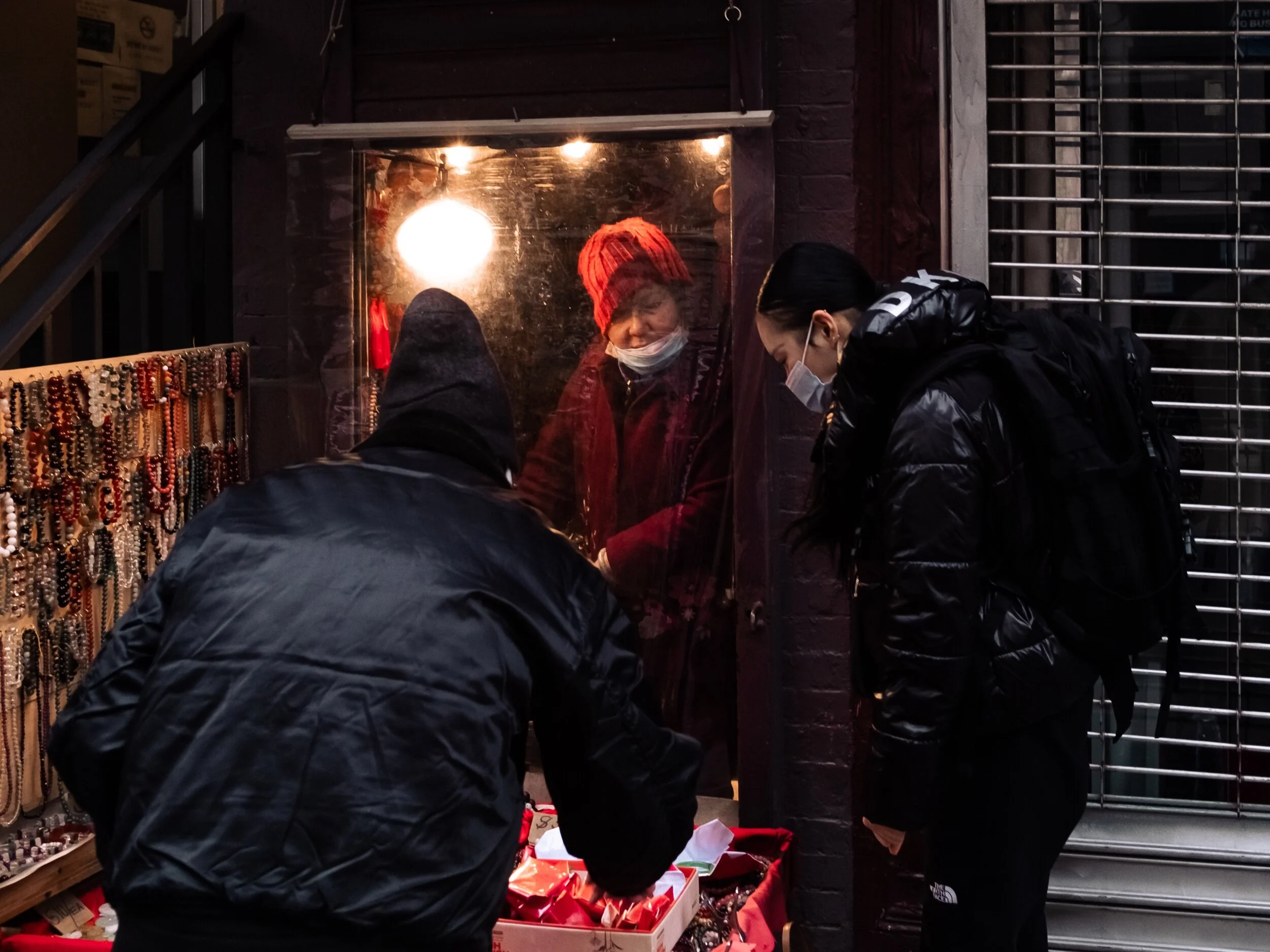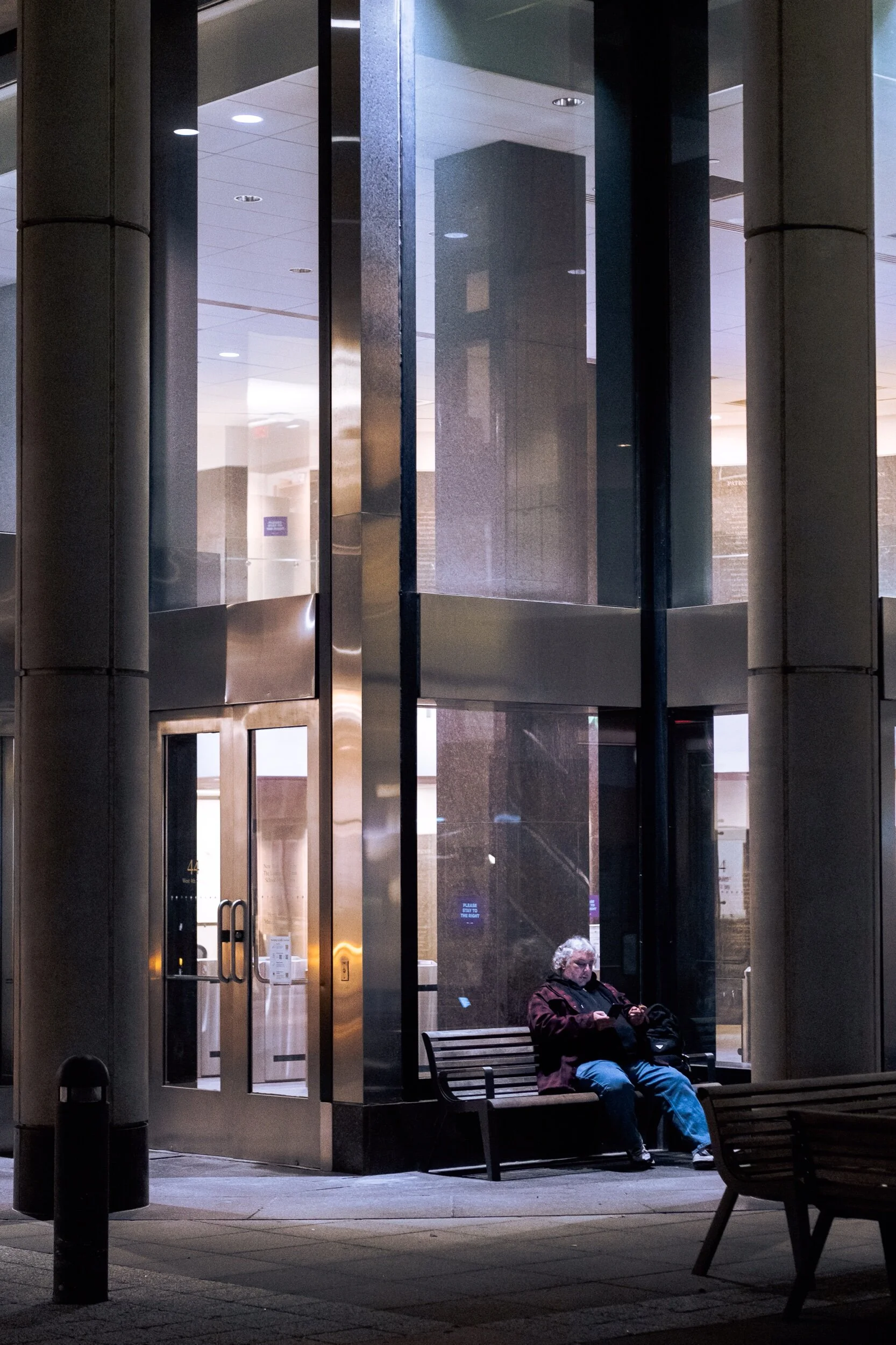 Definitely my favorite photo I love the lady behind the glass (in red) and how she’s illuminated by her lights. It feels like peeking into something personal.