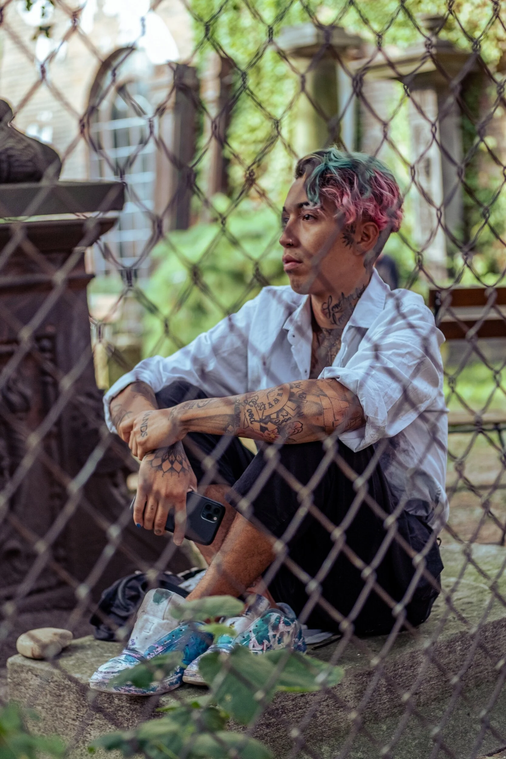 I think this portrait has the most impact artistically. His hair is loud he has a full sleeve but contrary to what that may suggest he looks very reserved and the gate adds to the lonely feeling in this shot.